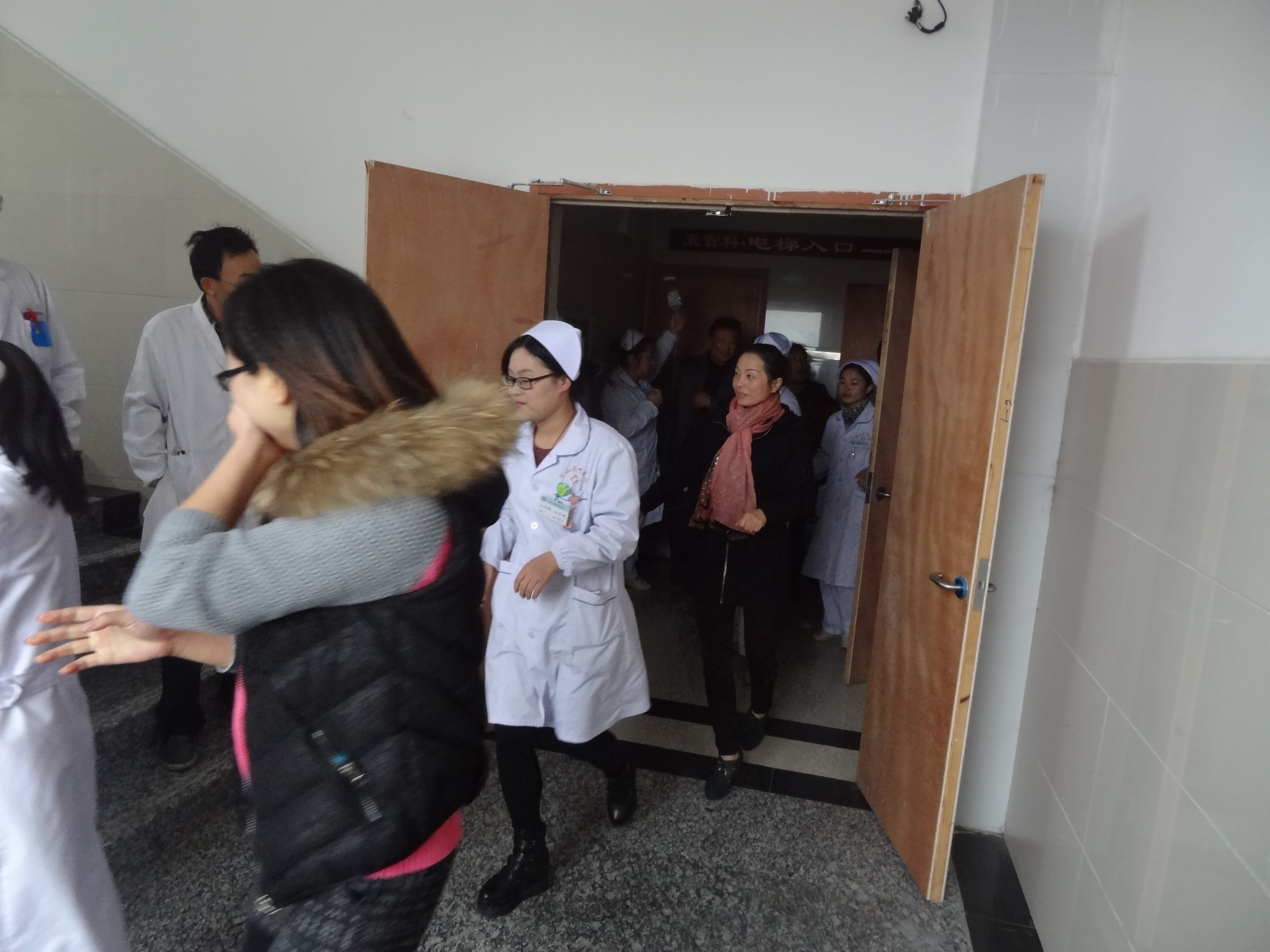 11月8日上午,县中医院开展高楼疏散应急消防实战演练。演练以六楼五官科病房为模拟现场,医院各相关部门负责人、五官科病区全体医务人员、患者及患者家属等近100人参加演练。院长徐结平亲自指挥,各部门、各小组按照《医院消防应急疏散预案》,积极配合,协同作战,紧张有序的开展演练。