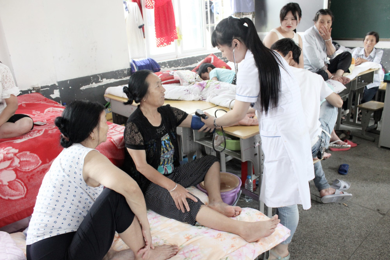7月3日,县四中集中转移安置了三百余人的灾区群众,医院被县防汛指挥部定为该点医疗救治工作单位。