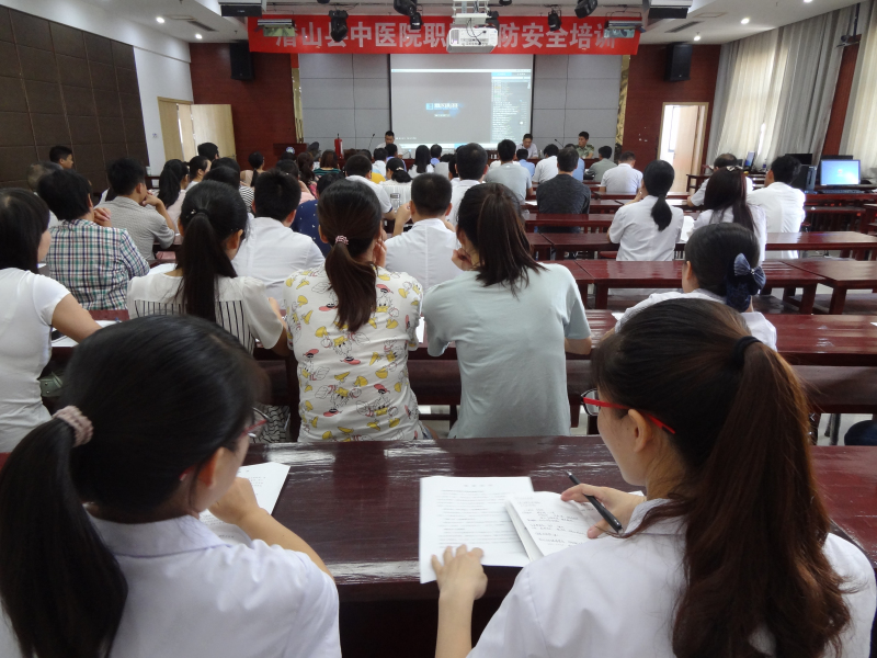 为认真贯彻落实国家及省、市消防安全工作一系列指示精神,进一步普及消防知识,提高全院干部职工消防安全和责任意识,9月13日下午,我院特邀请合肥市消防中心尹廷祥教官来院作题为《珍惜生命 远离火灾》的消防知识普及专题讲座。医院领导班子、各科科室负责人、护士长、各库管人员、应急小分队成员、后勤及保安等共100余人参加了培训。