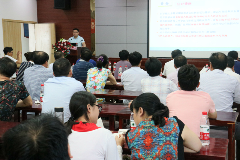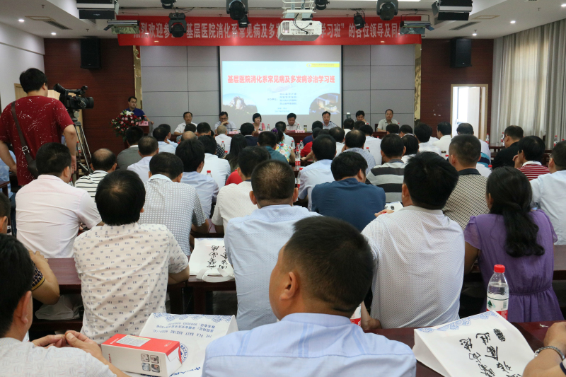 7月23日,市级继续医学教育项目《基层医院消化系常见病及多发病诊治进展》学习班在医院综合楼多功能厅举行。海军安庆医院院长胡炳德、县卫计委主任葛春节、县红十字会专职副会长陈倩、县中医院院长徐结平、县医院副院长汪军等出席开幕式并致词。来自县医院、县中医院消化内科、普外科临床医师及各乡镇(中心)卫生院、各村卫生室基层医疗骨干共计170余人参加此次学习培训。