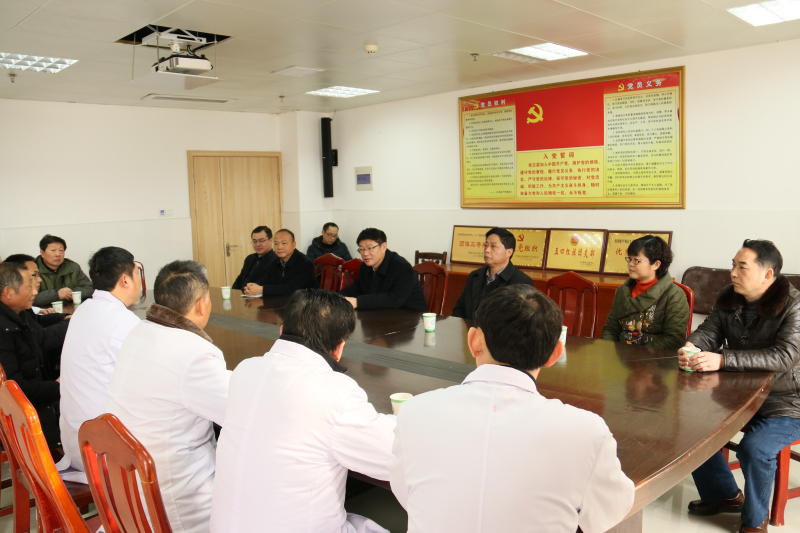 1月25日上午,腊月二十八,县委书记张劲松来我院看望慰问5名特困重病患者和节日坚守岗位的医护人员,给他们送上慰问金,并代表县委、县政府向他们表示节日的问候。县领导朱翯、刘胜江、蔡婷婷、储诚炜、张吉全及总工会、财政局、民政局、卫计委、人社局等相关部门负责人一同看望慰问。