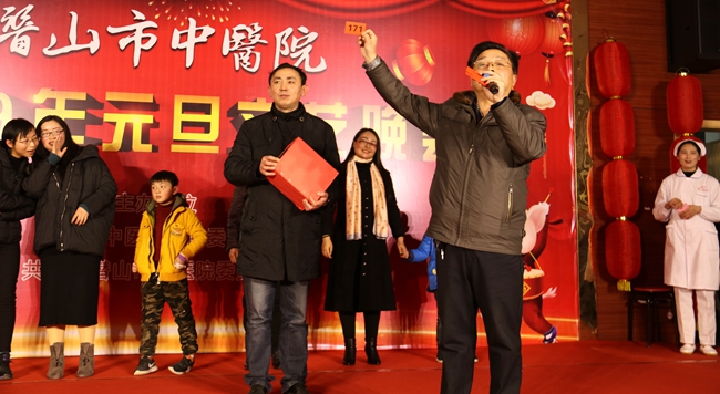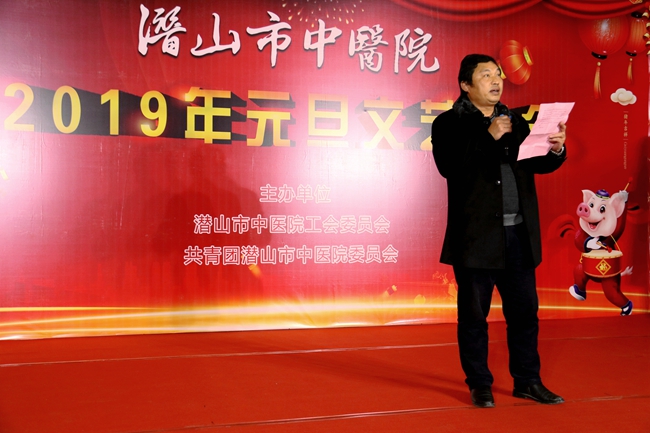晚会首先由党总支书记、院长徐结平致新年贺词,他说,2018年,我院在市委市政府、市卫计委领导下,以党建工作为引领,不忘初心,牢记使命,坚持以病人为中心,积极推进医疗体制改革,以求真务实的作风,全面扎实开展了各方面工作,有效提高了医院整体医疗水平和服务质量。2019年我院将以党的十九大精神及习近平总书记系列重要讲话精神为指导,进一步深化医疗卫生体制改革,创新工作思路,优化管理模式,持续提升医疗服务能力。