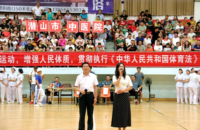 7月10日晚7:00,由市文旅体局主办,市篮协承办,我院协办并独家冠名赞助的2019年潜山市“中医杯”暨首届篮协联赛在市中心体育馆拉开帷幕。市人大常委会副主任黄晓安、市委宣传部副部长王江海、市卫健委主任葛春节、市文化旅游体育局局长李桃生、我院院长徐结平及市文化旅游体育局副局长陈建军、市篮球协会主席周冠群及来自全市青年组15支代表队、中青年组8支代表队和裁判员、教练员等出席开幕式。
