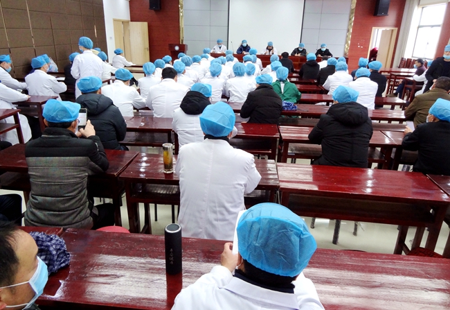 会议指出,鉴于疫情范围迅速扩大,按照上级主管部门部署要求,全院职工要树立政治意识、大局意识、责任意识和风险意识,立即行动起来,取消春节休假,疫情防治指挥部小组迅速进入战备状态,各科室主任、护士长进入工作状态,全体医务人员进入待命状态,并自觉坚守工作岗位,相关科室要积极应对,切实做好后勤保障工作。
