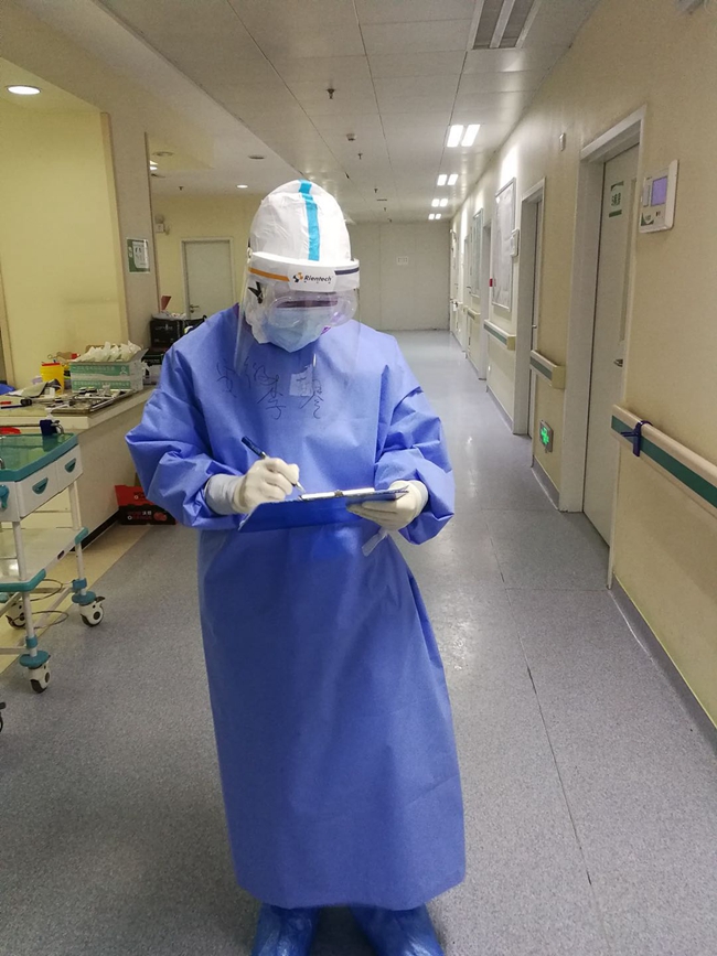 由于时间很紧急,3月14日,我们参加了隔离病区工作中的重点注意事项以及院感培训。培训特别强调,出病区的时候不能单独脱防护服,两两结伴,防止意外发生。培训完就有战友直接进入了病区,没有喘息的时间,直接上战场。回到酒店,我坐不住了,拿起自带的隔离衣防护服慢慢练习,一切从头开始,一步步小心翼翼,不敢有丝毫马虎。我相信在全国这么多战友的努力下,疫情会很快就会结束,我们会安全回家。