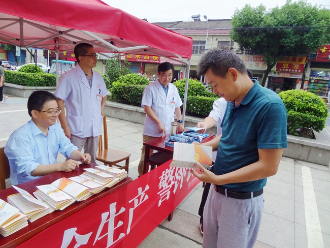宣传活动在综合楼广场前举行,院领导徐灿、韩仁贵、万峰及相关科室人员向过往群众、医院职工和来院就诊的患者、家属发放安全生产和消防安全知识的宣传册,并提供安全出行知识咨询。