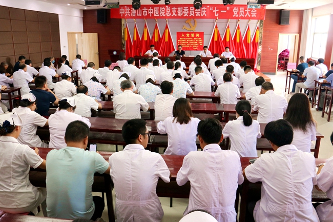 会议由医院党总支部副书记韩仁贵主持。庆祝大会在庄严的国歌声中开始,全体党员首先重温了入党誓词,入党誓词句句千钧,嘹亮的誓言让每一名党员抒发对党的忠诚,践行党的宗旨,激励了党员以自身的实际行动,维护党的形象和亲切情怀,做到不忘初心,牢记使命。