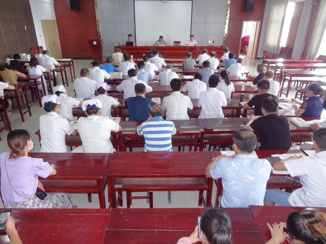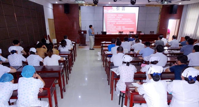 根据市委组织部《关于组织开展庆祝中国共产党成立99周年系列纪念活动的通知》相关要求,各级党组织要以“党课开讲啦”为载体,党组织书记带头上党课。8月5日下午,党总支部副书记韩仁贵以《加强医院党建 促进医改工作》为主题为全院党员干部上党课。医院全体党员,党政领导班子成员、各职能科室负责人、临床科室主任、护士长参加。